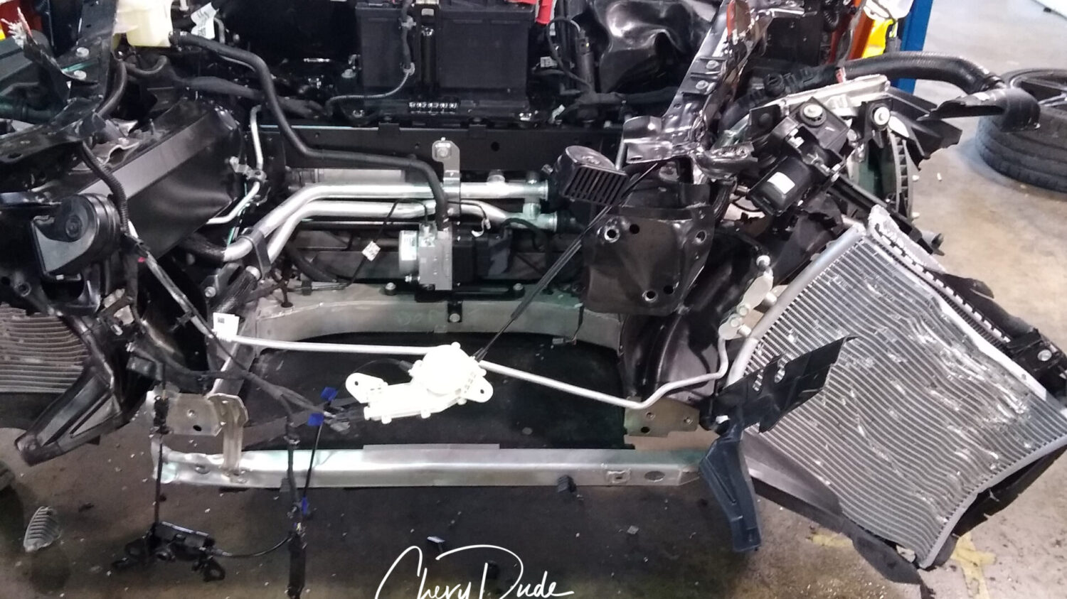 Looking closer at the car there are 2 front impact beams. The beams did their job and are easily replaceable, but It’s just a matter of getting parts. Getting parts on a brand new car can be the hardest part of the repair.