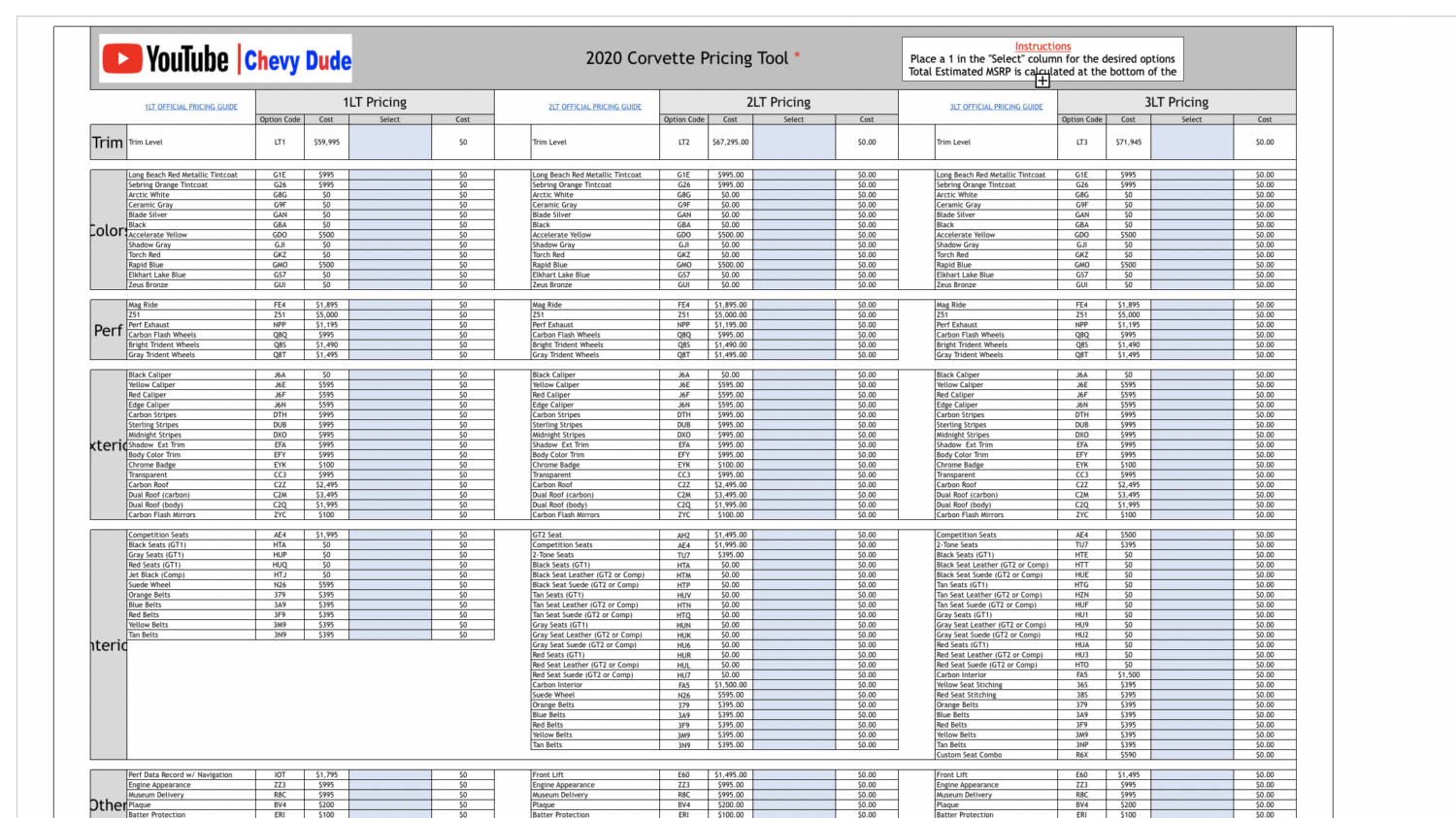 Aaron Tilden called me earlier in the day and told me how he nerded out and created this awesome Downloadable Excel spread sheet to help with configration and pricing your 2020 Corvette C8 Stingray.